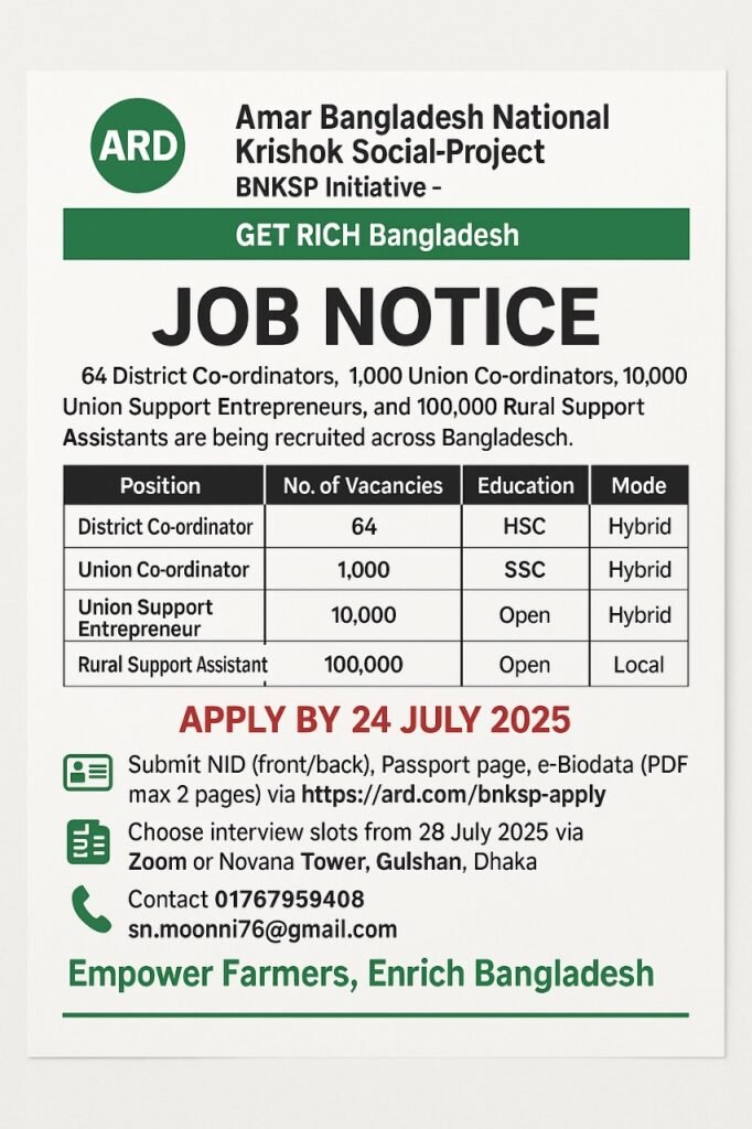 Shape the future of rural Bangladesh and build your career with us. Explore opportunities in the micro rural economic zone. To apply for jobs, you can explore various online platforms of the ARD’s Sub projects.